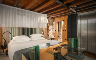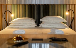 can enter directly into the suites themselves. Every detail of the interior is specially decorated, from specially designed furniture, handmade terrazzo floors and very high quality bedding. In the bathroom, guests can find all the necessary cosmetics of the well-known L’Occitane brand and a hair dryer. In addition to the above, the following are also available to guests: mini bar, coffee machine, safe, TV, WI-FI, towels, robes and a beach bag.