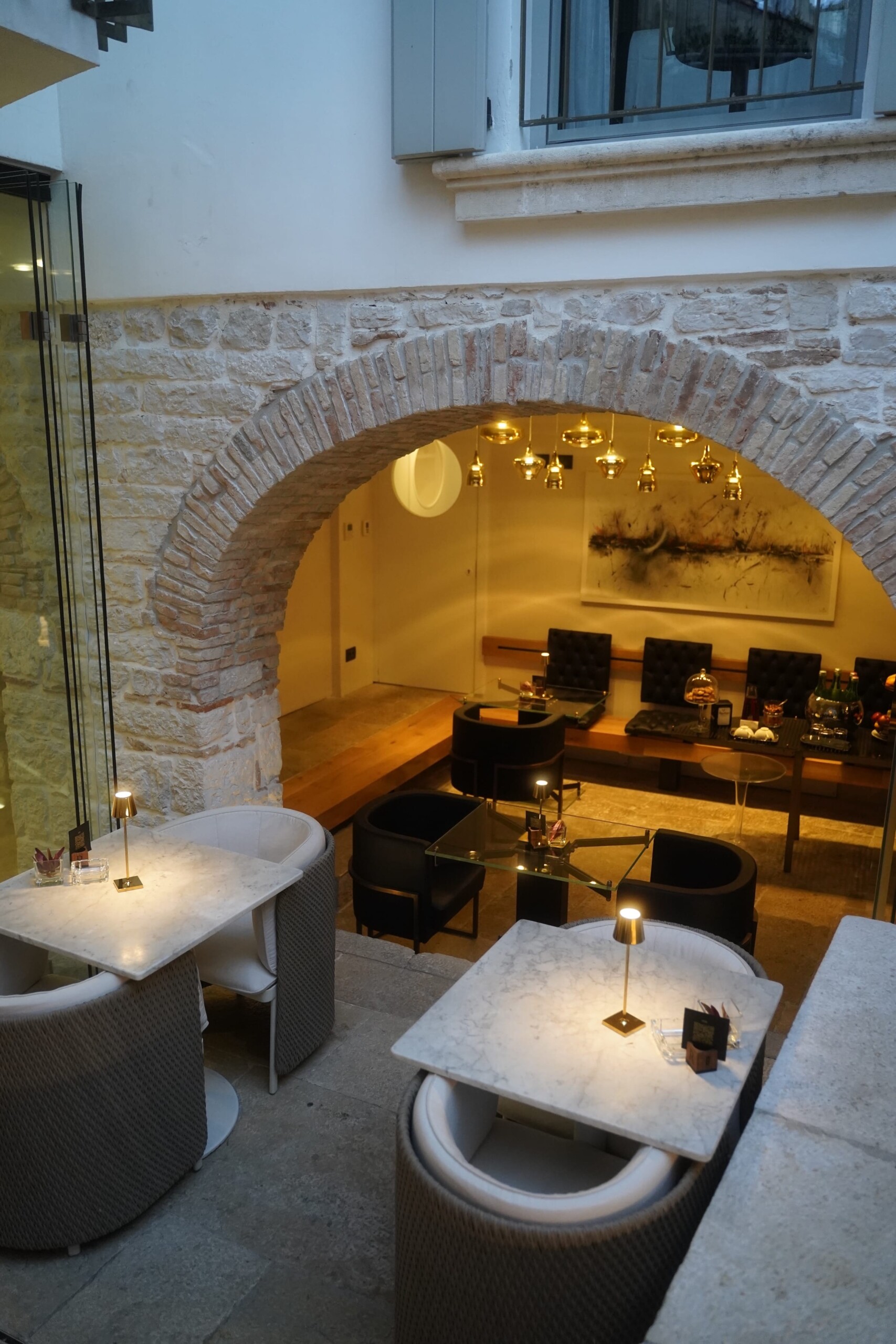 V pritličju hotela Spirito Santo Palazzo Storico se nahaja lounge bar in vinska klet, ki sta umeščena v prostor stare vodne cisterne. Imamo tudi notranji vrt s tipičnim starim vodnjakom iz prejšnjega stoletja. Ob hladnih jesenskih dneh se lahko ogrejete ob starodavnem istrskem odprtem kaminu. Popoldne in zvečer vam ponujamo raznovrstno izbiro skrbno izbranih hrvaških in slovenskih vin ter odlično izbiro žganih alkoholnih pijač. Vabimo vas, da poskusite dobrote iz naše lokalne istrske kuhinje. Vse jedi so sveže pripravljene iz odličnih lokalnih sestavin, na enak način, kot bi jih pripravila vaša babica…